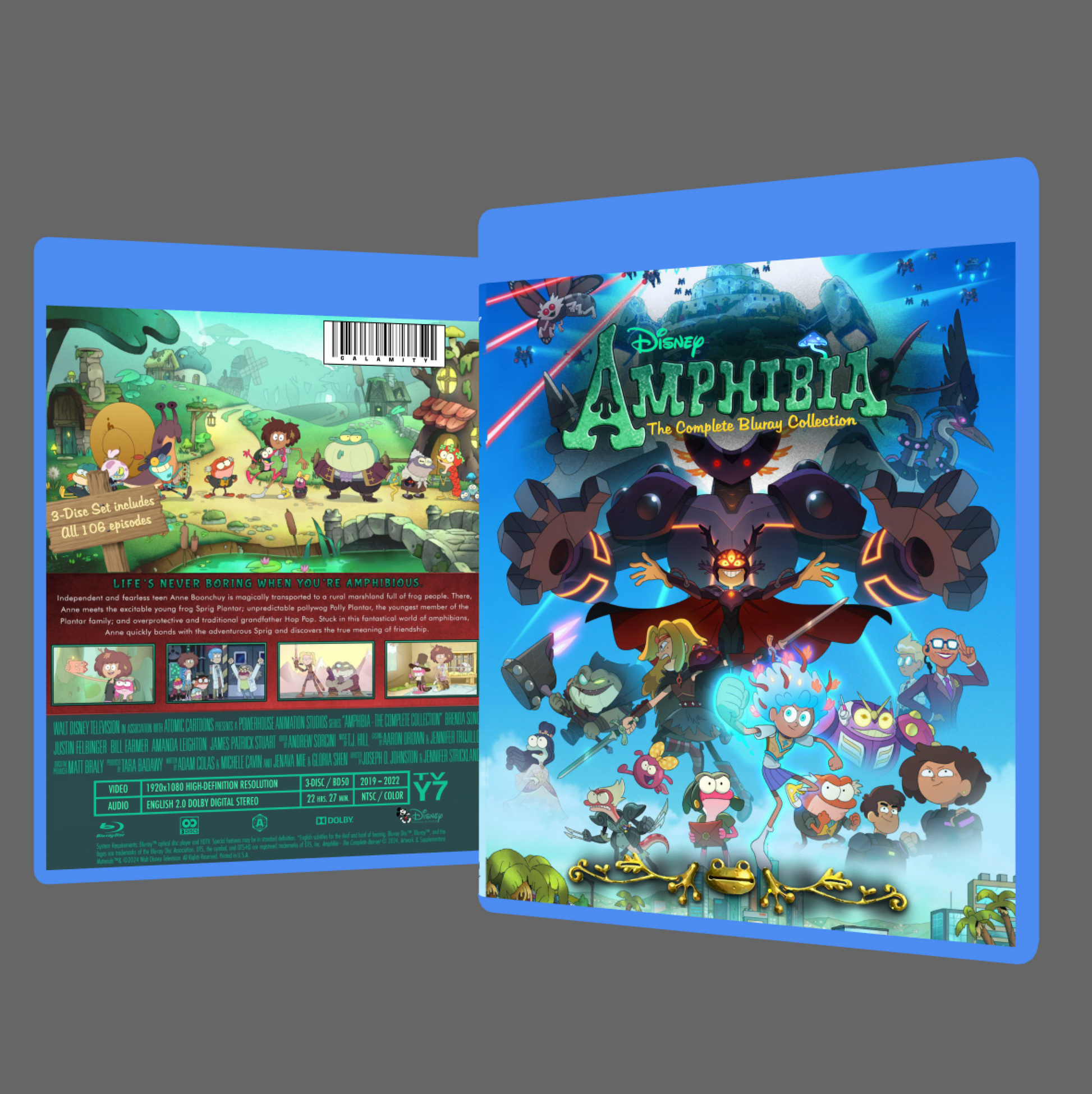 PRODUCT DETAILS: This 3-Disc set collects all 106 episodes from all 3 seasons of the Disney original animated series, Amphibia! Each episode is presented in full high-definition 1080p resolution and are presented here in proper chronological viewing order.